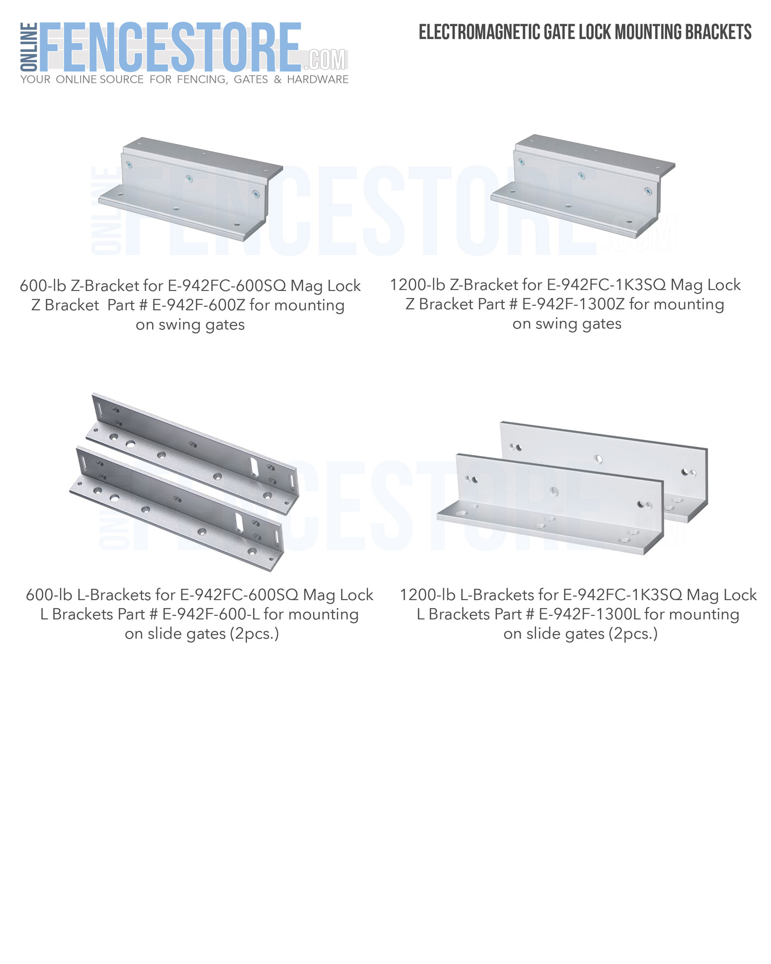600-lb L-Brackets for E-942FC-600SQ Mag Lock L Brackets Part # E-942F-600-L for mounting on slide gates (2pcs.)