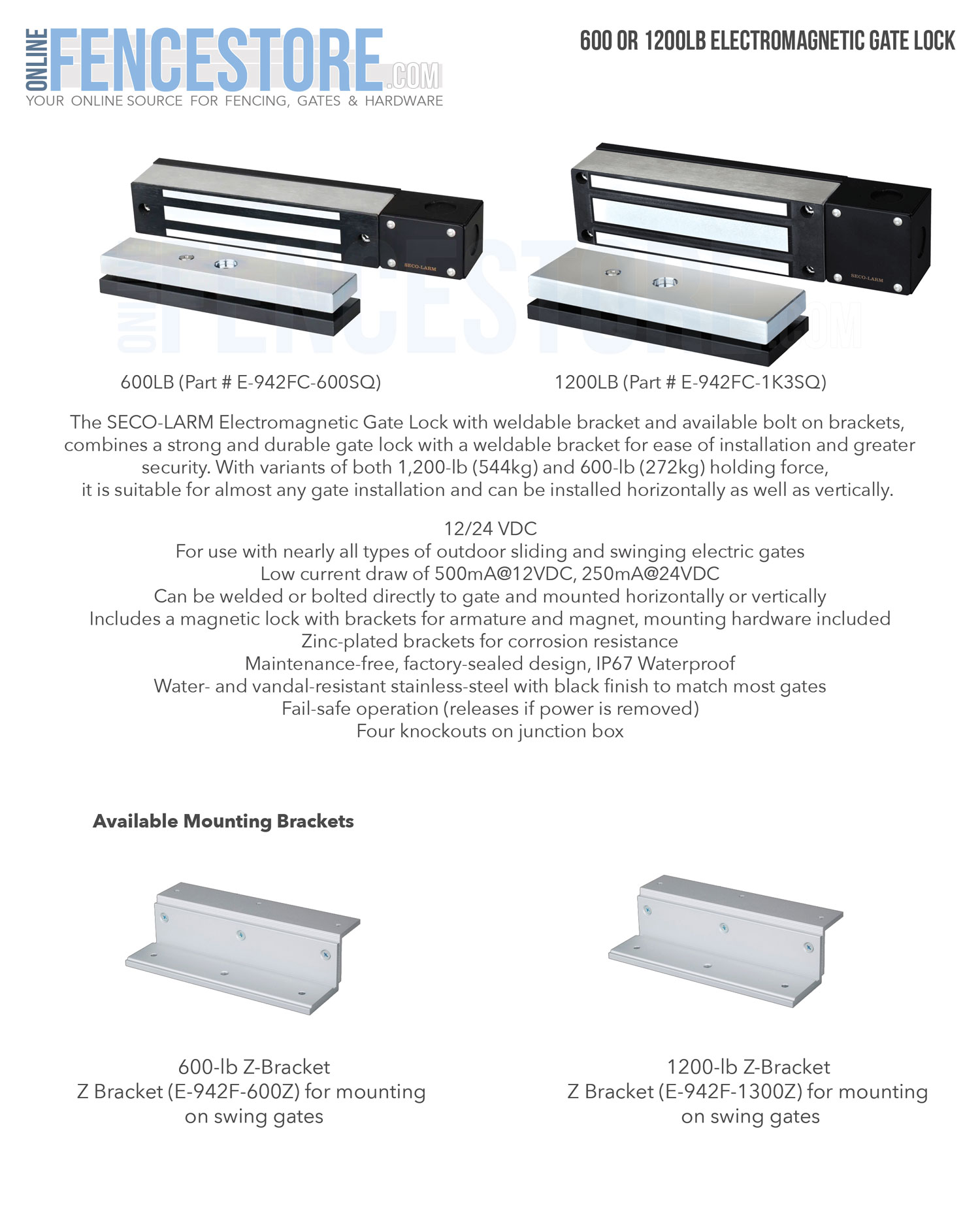 600LB (Part # E-942FC-600SQ), 1200LB (Part # E-942FC-1K3SQ)
